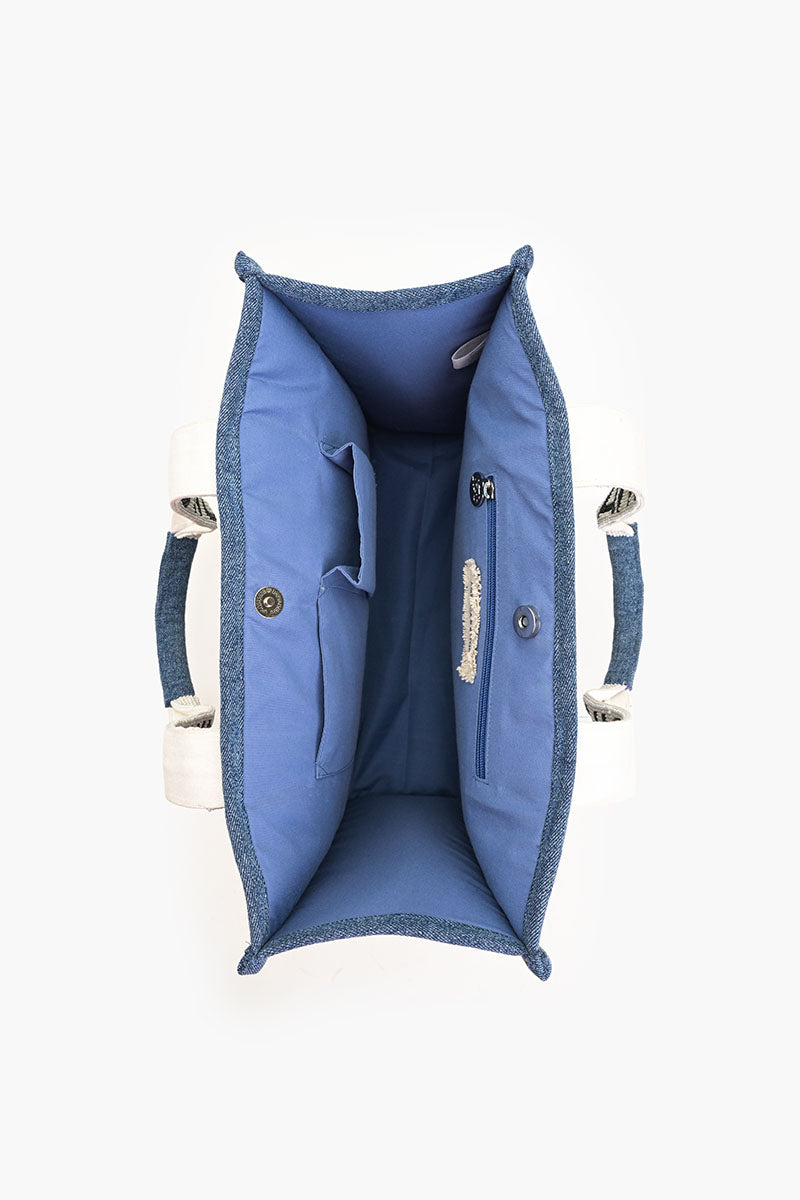 Inside you will find a blue poly lining with a zipper pocket, an open slip pocket, and a mobile pocket—because staying organized is just as important as looking fab. Grab it and go, bestie—this tote is ready for anything!