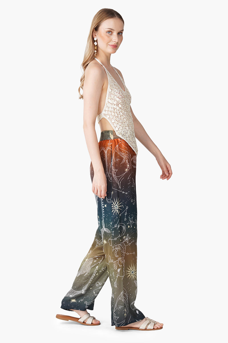 A hanky top that’s anything but ordinary. The front features a nylon fishnet panel, adorned with delicate hand-embroidered shell motifs for a unique, artisanal touch. At the back, a tie-knot closure at the neck and a striking backless design are balanced by a supportive strap for a secure fit. Flowy yet edgy, this top pairs effortlessly with high-waisted skirts, denim, or shorts—perfect for festivals, beach days, or city nights.