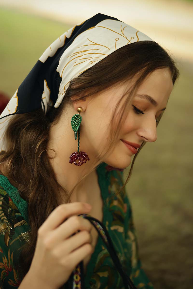 Add a vibrant pop of color to your look with these Handmade Beaded Floral Earrings, delicately crafted in rich green and red hues. Designed with intricate beadwork, these earrings feature dangling leaf and flower motifs, capturing the beauty of nature in every detail. The attachment is secured with jump rings and polished CCB tops, ensuring both style and sturdiness. Perfect for festive occasions, ethnic wear, or as a standout piece in your everyday jewelry collection, these earrings celebrate artisanal craftsmanship and unique charm.