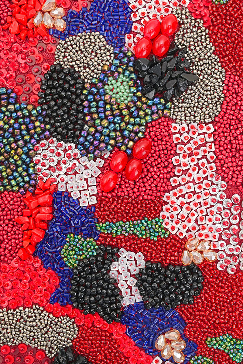With its eye-catching fully beaded exterior and beaded chain handles, this bag is perfect for those who love a little bling. Measuring 9.5 x 5.5 x 1.5 inches, it’s compact yet practical, featuring a top zip closure and an inner zip pocket for your essentials. Handmade by artisans with love and crafted from a mix of 70% cotton and 28% polyester (with a touch of lurex), this bag is your new go-to for any occasion!