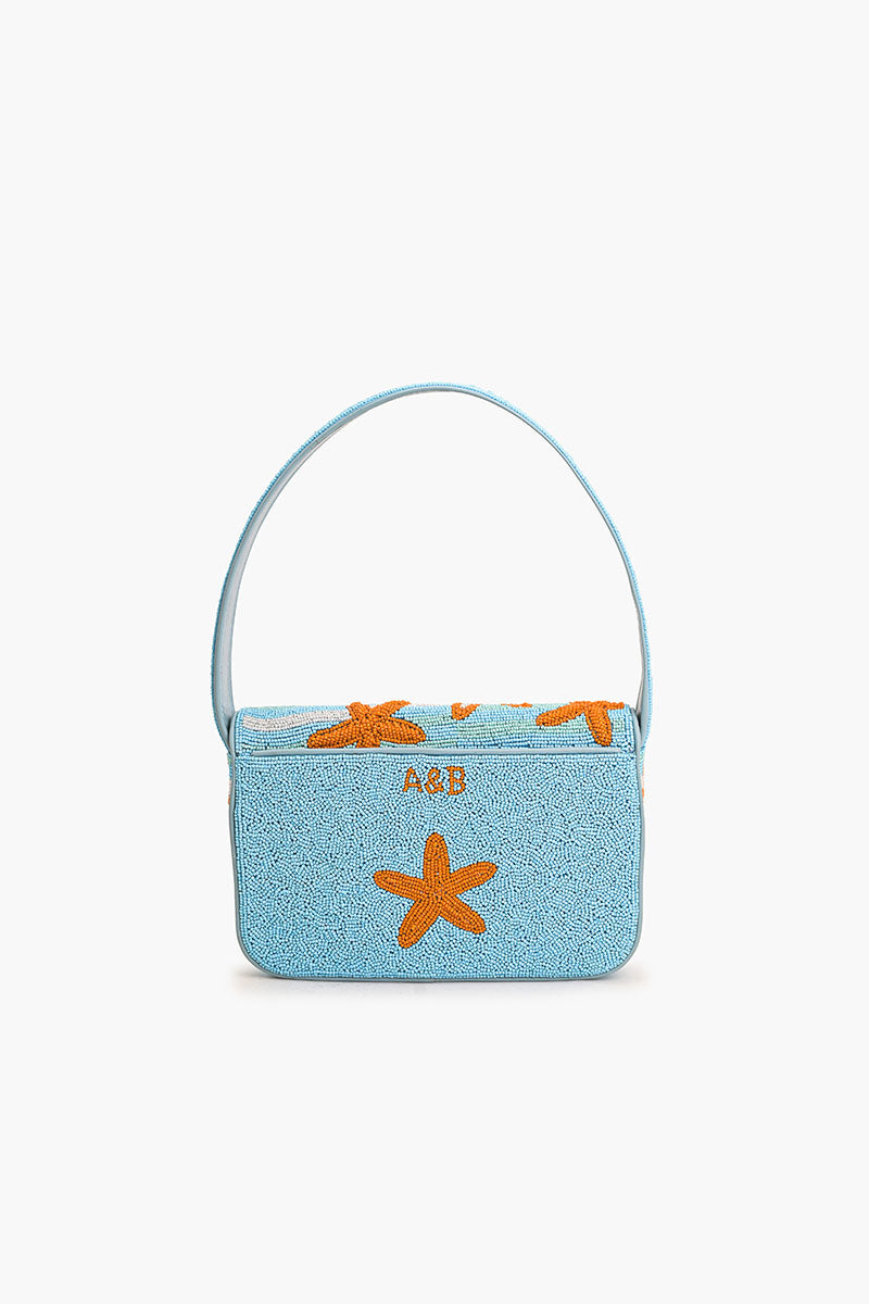 This playful shoulder bag brings a splash of the sea to your everyday style. Bright orange starfish embroidery dances across a light blue wavy background, offering a whimsical nod to coastal charm. The flap closure with dual magnetic snaps keeps essentials secure, while sky blue PU binding provides a polished finish. Inside, a smooth satin lining with a zipper pocket keeps belongings organized, and the back open pocket allows quick access to must-haves like your phone or keys.