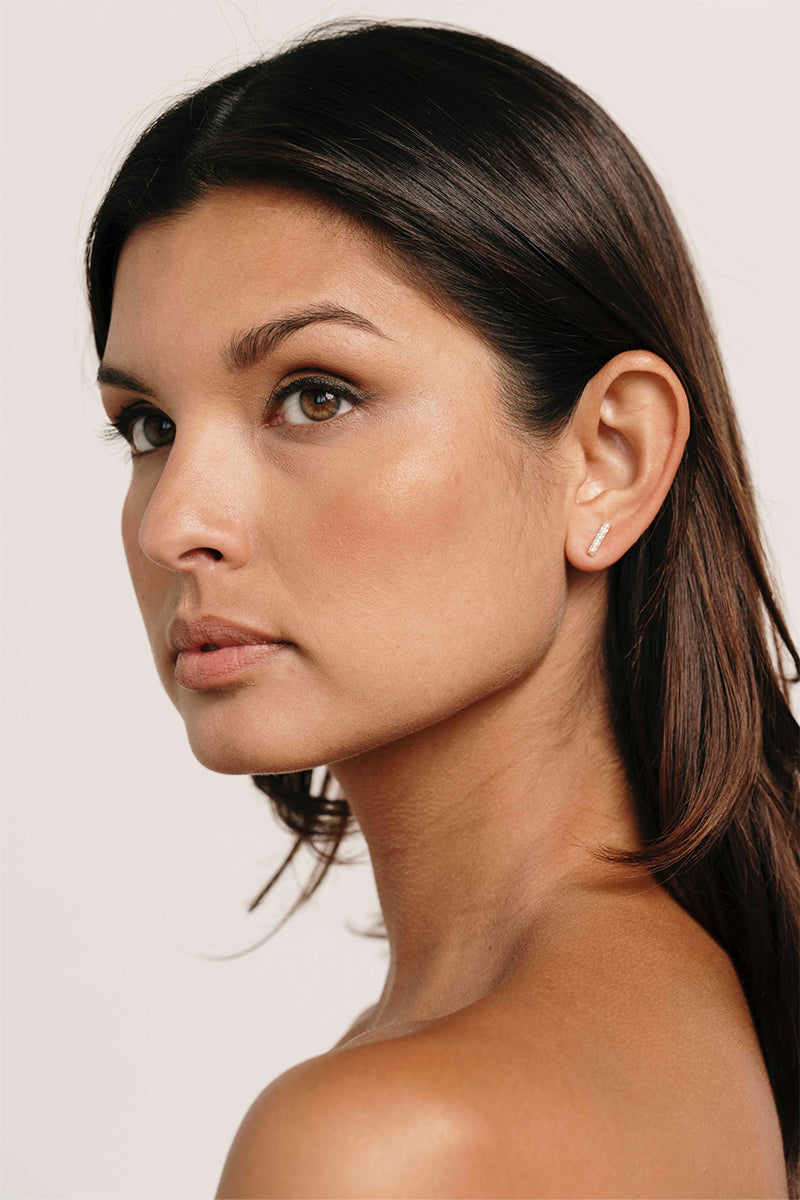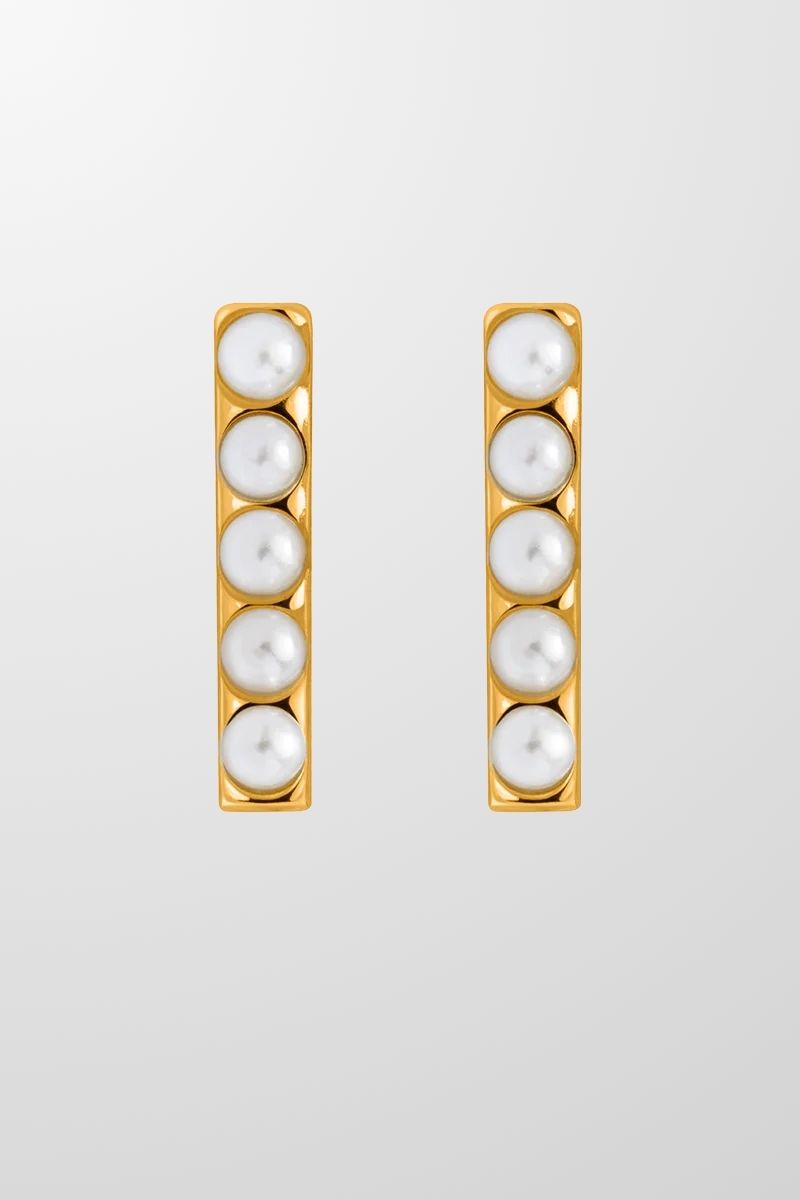 Short lines of pearls set in mini gold bars make for this take on the classic pearl earring style. Your soon to be go to, the Bar earrings are chic and sophisticated on their own or can be stacked and styled with other pieces.